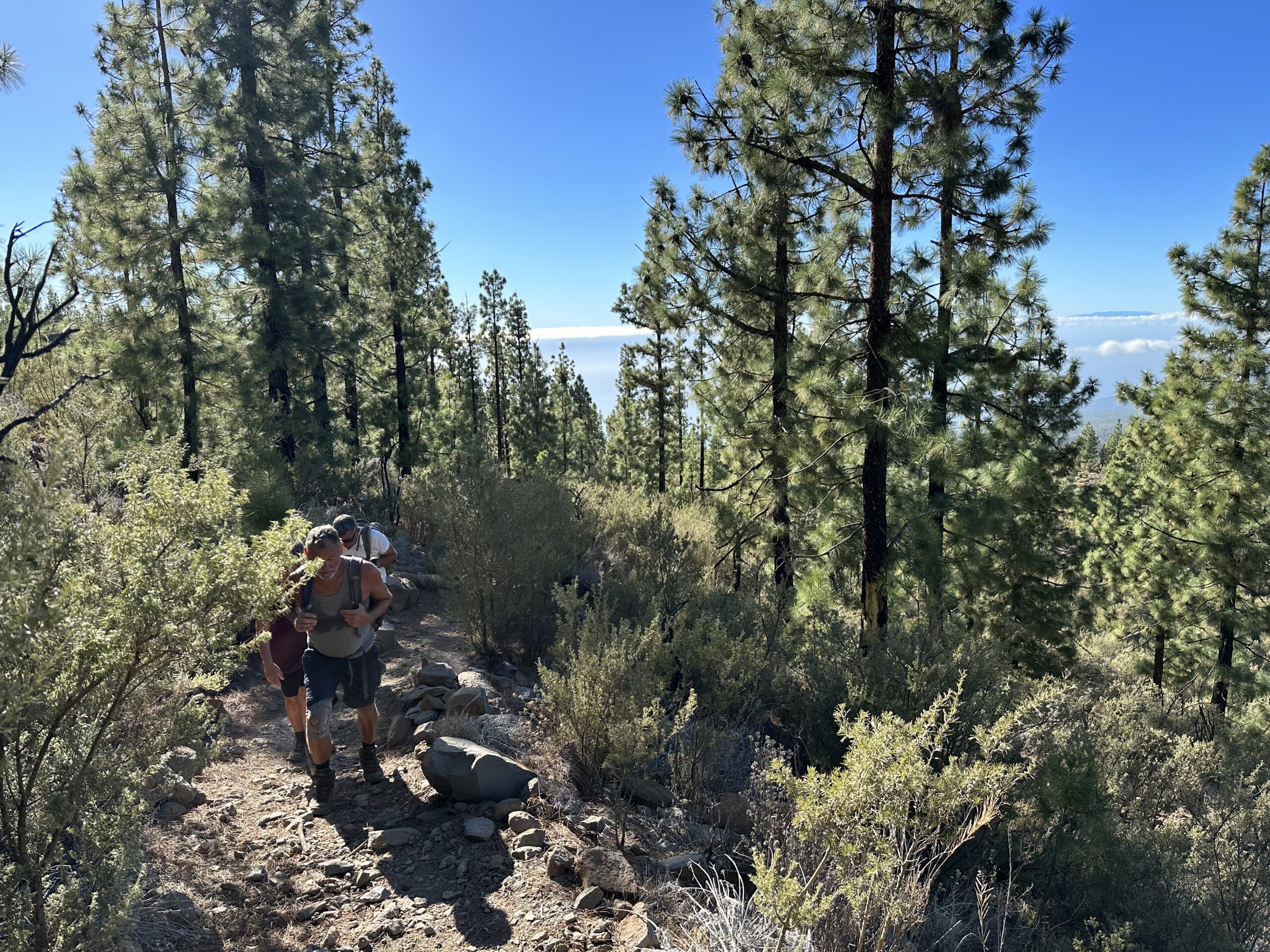 PR-TF 70.1 now leads downhill for quite some time. Initially, it heads towards Barranco de Tágara. Along the way, you will encounter many trees lying on the ground due to storms, thunderstorms and fires. Occasionally, you will have to find your way around these trees (still the case at the beginning of 2025). While the first part of the path is relatively wide and straight, it later descends steeply via small switchbacks towards the barranco.