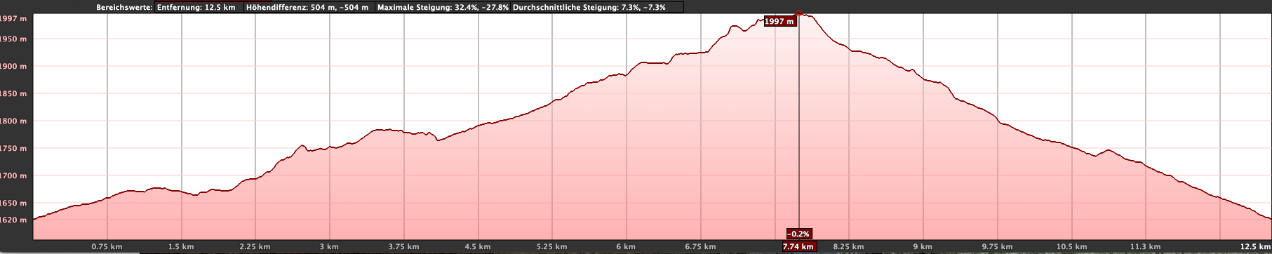 Die Höhendifferenz beträgt ca. 445 bzw. 408 Meter für die kleinere Runde und die Strecke ist knapp 14 bzw. 11 Kilometer auf der kleineren Runde lang.